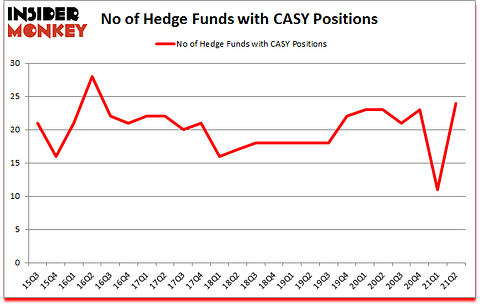 At Insider Monkey, we scour multiple sources to uncover the next great investment idea. For example, lithium mining is one of the fastest growing industries right now, so we are checking out stock pitches like this emerging lithium stock. We go through lists like the 10 best EV stocks to pick the next Tesla that will deliver a 10x return. Even though we recommend positions in only a tiny fraction of the companies we analyze, we check out as many stocks as we can. We read hedge fund investor letters and listen to stock pitches at hedge fund conferences. You can subscribe to our free daily newsletter on our homepage. Now we’re going to take a look at the recent hedge fund action surrounding Casey’s General Stores, Inc. (NASDAQ:CASY).