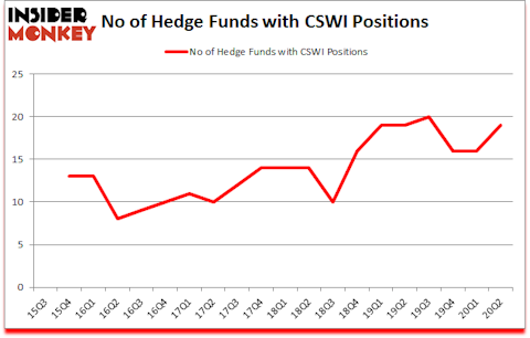 CSW Industrials, Inc. (NASDAQ:CSWI) was in 19 hedge funds’ portfolios at the end of the second quarter of 2020. The all time high for this statistics is 20. CSWI investors should pay attention to an increase in activity from the world’s largest hedge funds lately. There were 16 hedge funds in our database with CSWI holdings at the end of March. Our calculations also showed that CSWI isn’t among the 30 most popular stocks among hedge funds (click for Q2 rankings and see the video for a quick look at the top 5 stocks).