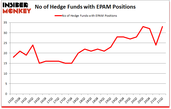 At second quarter’s end, a total of 33 of the hedge funds tracked by Insider Monkey were bullish on this stock, a change of 38% from the previous quarter. The graph below displays the number of hedge funds with bullish position in EPAM over the last 24 quarters. So, let’s check out which hedge funds were among the top holders of the stock and which hedge funds were making big moves.