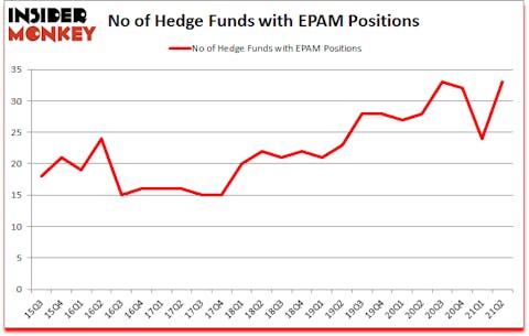 Is EPAM Systems Inc (NYSE:EPAM) an outstanding investment today? The best stock pickers were betting on the stock. The number of bullish hedge fund positions inched up by 9 recently. EPAM Systems Inc (NYSE:EPAM) was in 33 hedge funds’ portfolios at the end of June. The all time high for this statistic is 33. This means the bullish number of hedge fund positions in this stock currently sits at its all time high. Our calculations also showed that EPAM isn’t among the 30 most popular stocks among hedge funds (click for Q2 rankings).