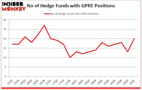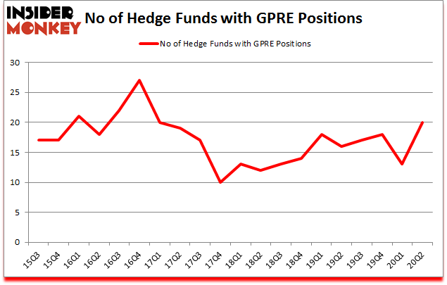 Green Plains Inc. (NASDAQ:GPRE) was in 20 hedge funds’ portfolios at the end of the second quarter of 2020. The all time high for this statistics is 27. GPRE has seen an increase in hedge fund sentiment of late. There were 13 hedge funds in our database with GPRE positions at the end of the first quarter. Our calculations also showed that GPRE isn’t among the 30 most popular stocks among hedge funds (click for Q2 rankings and see the video for a quick look at the top 5 stocks).