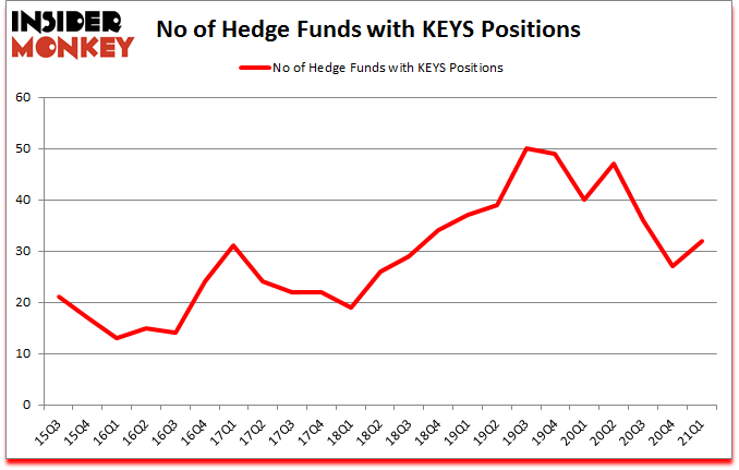 At the end of the first quarter, a total of 32 of the hedge funds tracked by Insider Monkey were bullish on this stock, a change of 19% from the fourth quarter of 2020. The graph below displays the number of hedge funds with bullish position in KEYS over the last 23 quarters. So, let’s find out which hedge funds were among the top holders of the stock and which hedge funds were making big moves.