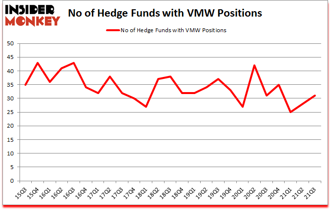 VMware, Inc. (NYSE:VMW) investors should be aware of an increase in hedge fund interest in recent months. VMware, Inc. (NYSE:VMW) was in 31 hedge funds’ portfolios at the end of September. The all time high for this statistic is 43. There were 28 hedge funds in our database with VMW positions at the end of the second quarter. Our calculations also showed that VMW isn’t among the 30 most popular stocks among hedge funds (click for Q3 rankings).