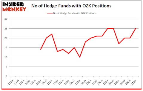 Bank OZK (NASDAQ:OZK) shareholders have witnessed an increase in support from the world’s most elite money managers lately. Bank OZK (NASDAQ:OZK) was in 25 hedge funds’ portfolios at the end of March. The all time high for this statistic is 25. This means the bullish number of hedge fund positions in this stock currently sits at its all time high. There were 20 hedge funds in our database with OZK holdings at the end of December. Our calculations also showed that OZK isn’t among the 30 most popular stocks among hedge funds (click for Q1 rankings).
