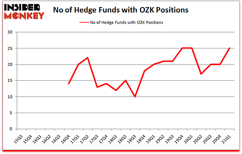 Bank OZK (NASDAQ:OZK) shareholders have witnessed an increase in support from the world’s most elite money managers lately. Bank OZK (NASDAQ:OZK) was in 25 hedge funds’ portfolios at the end of March. The all time high for this statistic is 25. This means the bullish number of hedge fund positions in this stock currently sits at its all time high. There were 20 hedge funds in our database with OZK holdings at the end of December. Our calculations also showed that OZK isn’t among the 30 most popular stocks among hedge funds (click for Q1 rankings).