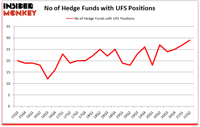 At the end of June, a total of 29 of the hedge funds tracked by Insider Monkey held long positions in this stock, a change of 7% from one quarter earlier. On the other hand, there were a total of 27 hedge funds with a bullish position in UFS a year ago. With hedge funds’ positions undergoing their usual ebb and flow, there exists a few key hedge fund managers who were adding to their holdings considerably (or already accumulated large positions).