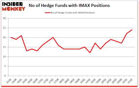 IMAX Corporation (NYSE:IMAX) was in 24 hedge funds’ portfolios at the end of June. The all time high for this statistic is 22. This means the bullish number of hedge fund positions in this stock currently sits at its all time high. IMAX shareholders have witnessed an increase in enthusiasm from smart money recently. There were 22 hedge funds in our database with IMAX positions at the end of the first quarter. Our calculations also showed that IMAX isn’t among the 30 most popular stocks among hedge funds (click for Q2 rankings).
