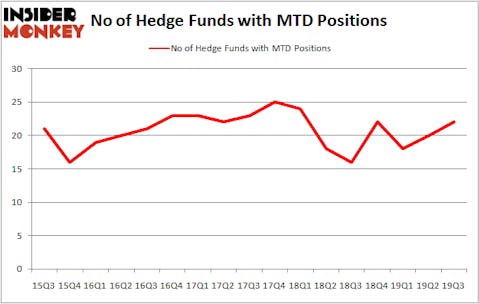 Is Mettler-Toledo International Inc. (NYSE:MTD) a healthy stock for your portfolio? Money managers are getting more optimistic. The number of long hedge fund positions rose by 2 lately. Our calculations also showed that MTD isn’t among the 30 most popular stocks among hedge funds (click for Q3 rankings and see the video below for Q2 rankings). MTD was in 22 hedge funds’ portfolios at the end of the third quarter of 2019. There were 20 hedge funds in our database with MTD holdings at the end of the previous quarter.
