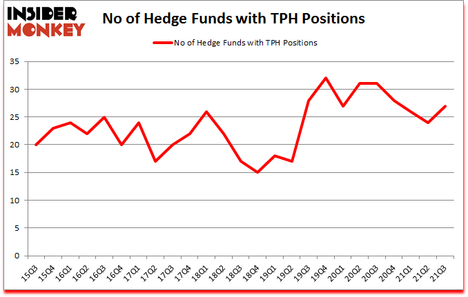 Heading into the fourth quarter of 2021, a total of 27 of the hedge funds tracked by Insider Monkey were bullish on this stock, a change of 13% from one quarter earlier. By comparison, 31 hedge funds held shares or bullish call options in TPH a year ago. With hedge funds’ positions undergoing their usual ebb and flow, there exists an “upper tier” of notable hedge fund managers who were increasing their stakes meaningfully (or already accumulated large positions).