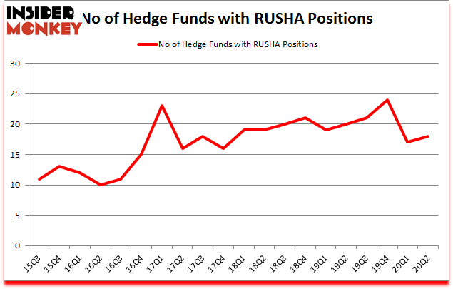 Rush Enterprises, Inc. (NASDAQ:RUSHA) shareholders have witnessed an increase in hedge fund interest recently. Rush Enterprises, Inc. (NASDAQ:RUSHA) was in 18 hedge funds’ portfolios at the end of the second quarter of 2020. The all time high for this statistics is 24. There were 17 hedge funds in our database with RUSHA positions at the end of the first quarter. Our calculations also showed that RUSHA isn’t among the 30 most popular stocks among hedge funds (click for Q2 rankings and see the video for a quick look at the top 5 stocks).