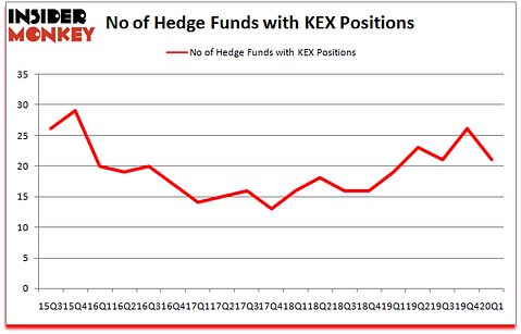 At Q1’s end, a total of 21 of the hedge funds tracked by Insider Monkey were bullish on this stock, a change of -19% from one quarter earlier. The graph below displays the number of hedge funds with bullish position in KEX over the last 18 quarters. So, let’s review which hedge funds were among the top holders of the stock and which hedge funds were making big moves.