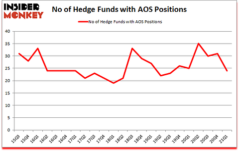 Is A. O. Smith Corporation (NYSE:AOS) a bargain? The best stock pickers were taking a pessimistic view. The number of long hedge fund bets decreased by 7 in recent months. A. O. Smith Corporation (NYSE:AOS) was in 24 hedge funds’ portfolios at the end of March. The all time high for this statistic is 35. Our calculations also showed that AOS isn’t among the 30 most popular stocks among hedge funds (click for Q1 rankings).