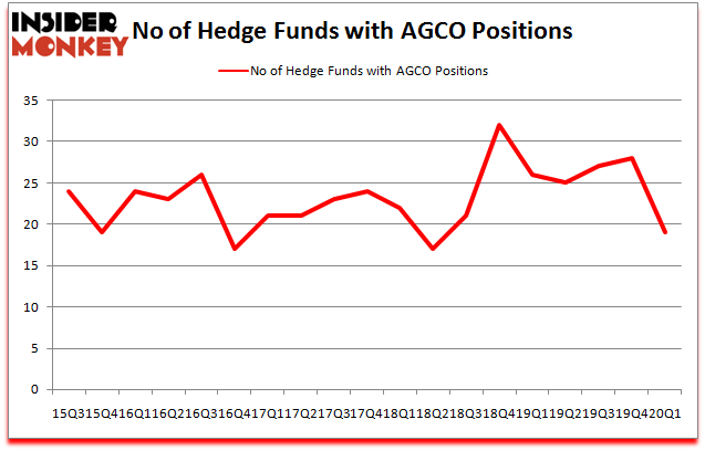 Is AGCO Corporation (NYSE:AGCO) the right investment to pursue these days? Investors who are in the know are reducing their bets on the stock. The number of bullish hedge fund bets shrunk by 9 lately. Our calculations also showed that AGCO isn’t among the 30 most popular stocks among hedge funds (click for Q1 rankings and see the video for a quick look at the top 5 stocks). AGCO was in 19 hedge funds’ portfolios at the end of the first quarter of 2020. There were 28 hedge funds in our database with AGCO holdings at the end of the previous quarter.