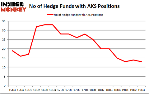 Heading into the fourth quarter of 2019, a total of 13 of the hedge funds tracked by Insider Monkey held long positions in this stock, a change of -7% from the previous quarter. Below, you can check out the change in hedge fund sentiment towards AKS over the last 17 quarters. So, let’s check out which hedge funds were among the top holders of the stock and which hedge funds were making big moves.