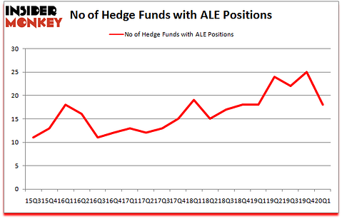Heading into the second quarter of 2020, a total of 18 of the hedge funds tracked by Insider Monkey held long positions in this stock, a change of -28% from the previous quarter. Below, you can check out the change in hedge fund sentiment towards ALE over the last 18 quarters. So, let’s see which hedge funds were among the top holders of the stock and which hedge funds were making big moves.