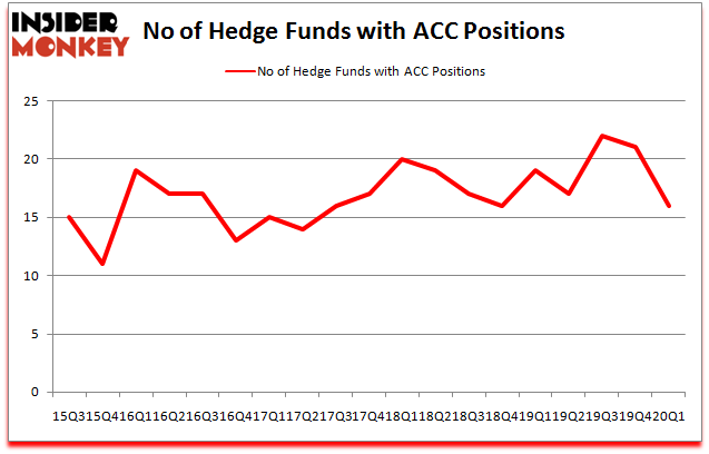 At Q1’s end, a total of 16 of the hedge funds tracked by Insider Monkey were long this stock, a change of -24% from one quarter earlier. The graph below displays the number of hedge funds with bullish position in ACC over the last 18 quarters. So, let’s see which hedge funds were among the top holders of the stock and which hedge funds were making big moves.