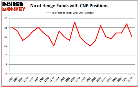At second quarter’s end, a total of 20 of the hedge funds tracked by Insider Monkey held long positions in this stock, a change of -26% from the first quarter of 2020. The graph below displays the number of hedge funds with bullish position in CNR over the last 24 quarters. So, let’s examine which hedge funds were among the top holders of the stock and which hedge funds were making big moves.