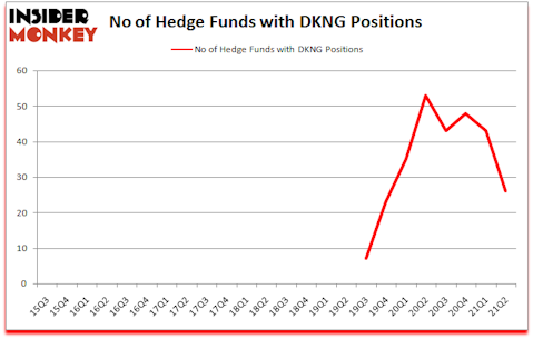 DraftKings Inc. (NASDAQ:DKNG) shareholders have witnessed a decrease in hedge fund sentiment of late. DraftKings Inc. (NASDAQ:DKNG) was in 26 hedge funds’ portfolios at the end of the second quarter of 2021. The all time high for this statistic is 53. Our calculations also showed that DKNG isn’t among the 30 most popular stocks among hedge funds (click for Q2 rankings).