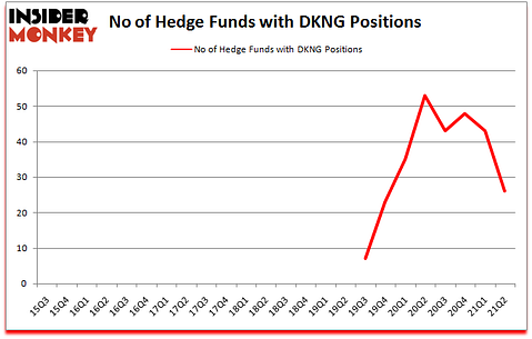 DraftKings Inc. (NASDAQ:DKNG) shareholders have witnessed a decrease in hedge fund sentiment of late. DraftKings Inc. (NASDAQ:DKNG) was in 26 hedge funds’ portfolios at the end of the second quarter of 2021. The all time high for this statistic is 53. Our calculations also showed that DKNG isn’t among the 30 most popular stocks among hedge funds (click for Q2 rankings).