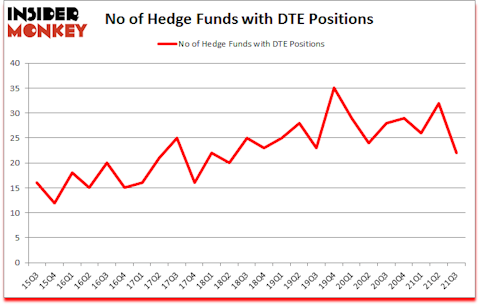 DTE Energy Company (NYSE:DTE) investors should be aware of a decrease in enthusiasm from smart money recently. DTE Energy Company (NYSE:DTE) was in 22 hedge funds’ portfolios at the end of the third quarter of 2021. The all time high for this statistic is 35. Our calculations also showed that DTE isn’t among the 30 most popular stocks among hedge funds (click for Q2 rankings).