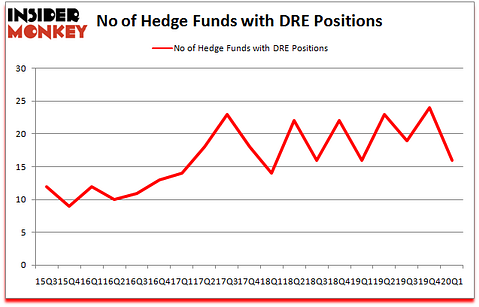 At Q1’s end, a total of 16 of the hedge funds tracked by Insider Monkey held long positions in this stock, a change of -33% from the previous quarter. The graph below displays the number of hedge funds with bullish position in DRE over the last 18 quarters. So, let’s check out which hedge funds were among the top holders of the stock and which hedge funds were making big moves.