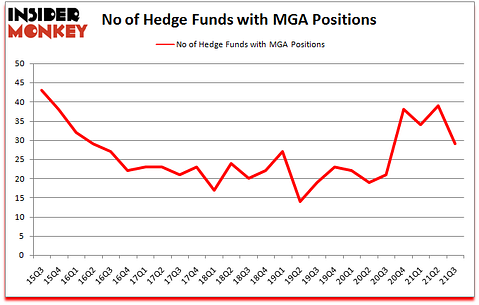 Is Magna International Inc. (NYSE:MGA) an outstanding investment right now? The smart money was reducing their bets on the stock. The number of bullish hedge fund positions were cut by 10 in recent months. Magna International Inc. (NYSE:MGA) was in 29 hedge funds’ portfolios at the end of the third quarter of 2021. The all time high for this statistic is 43. Our calculations also showed that MGA isn’t among the 30 most popular stocks among hedge funds (click for Q3 rankings). There were 39 hedge funds in our database with MGA positions at the end of the second quarter.