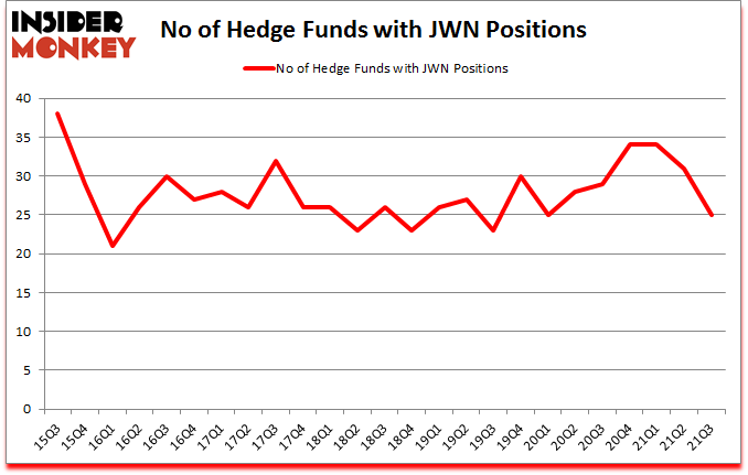 Nordstrom, Inc. (NYSE:JWN) was in 25 hedge funds’ portfolios at the end of September. The all time high for this statistic is 38. JWN has seen a decrease in activity from the world’s largest hedge funds in recent months. There were 31 hedge funds in our database with JWN positions at the end of the second quarter. Our calculations also showed that JWN isn’t among the 30 most popular stocks among hedge funds (click for Q3 rankings).