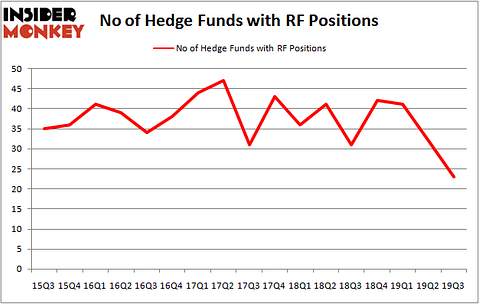 At the end of the third quarter, a total of 23 of the hedge funds tracked by Insider Monkey were long this stock, a change of -28% from the second quarter of 2019. On the other hand, there were a total of 31 hedge funds with a bullish position in RF a year ago. So, let’s review which hedge funds were among the top holders of the stock and which hedge funds were making big moves.
