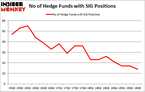 At Q3’s end, a total of 14 of the hedge funds tracked by Insider Monkey held long positions in this stock, a change of -18% from the previous quarter. Below, you can check out the change in hedge fund sentiment towards SIG over the last 17 quarters. So, let’s find out which hedge funds were among the top holders of the stock and which hedge funds were making big moves.
