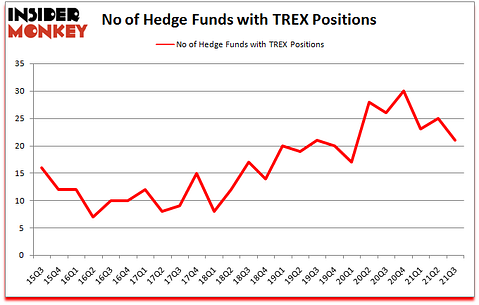 Heading into the fourth quarter of 2021, a total of 21 of the hedge funds tracked by Insider Monkey were bullish on this stock, a change of -16% from the previous quarter. By comparison, 26 hedge funds held shares or bullish call options in TREX a year ago. With hedgies’ positions undergoing their usual ebb and flow, there exists an “upper tier” of noteworthy hedge fund managers who were increasing their holdings significantly (or already accumulated large positions).