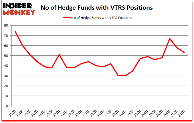 Viatris Inc. (NASDAQ:VTRS) investors should be aware of a decrease in hedge fund sentiment of late. Viatris Inc. (NASDAQ:VTRS) was in 53 hedge funds’ portfolios at the end of the second quarter of 2021. The all time high for this statistic is 74. There were 58 hedge funds in our database with VTRS positions at the end of the first quarter. Our calculations also showed that VTRS isn’t among the 30 most popular stocks among hedge funds (click for Q2 rankings).