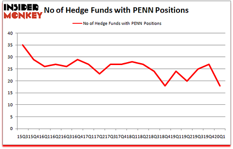 Penn National Gaming, Inc (NASDAQ:PENN) was in 18 hedge funds’ portfolios at the end of the first quarter of 2020. PENN has seen a decrease in support from the world’s most elite money managers of late. There were 27 hedge funds in our database with PENN positions at the end of the previous quarter. Our calculations also showed that PENN isn’t among the 30 most popular stocks among hedge funds (click for Q1 rankings and see the video for a quick look at the top 5 stocks).