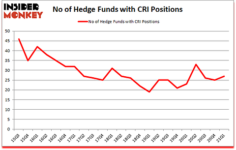 At the end of the first quarter, a total of 27 of the hedge funds tracked by Insider Monkey were long this stock, a change of 8% from one quarter earlier. By comparison, 23 hedge funds held shares or bullish call options in CRI a year ago. So, let’s see which hedge funds were among the top holders of the stock and which hedge funds were making big moves.