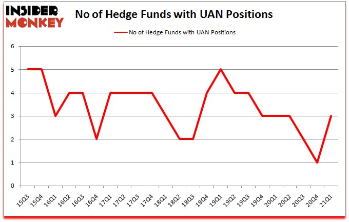 At first quarter’s end, a total of 3 of the hedge funds tracked by Insider Monkey held long positions in this stock, a change of 200% from the previous quarter. The graph below displays the number of hedge funds with bullish position in UAN over the last 23 quarters. So, let’s see which hedge funds were among the top holders of the stock and which hedge funds were making big moves.