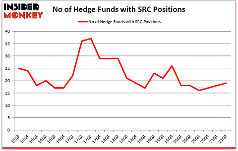 Heading into the third quarter of 2021, a total of 19 of the hedge funds tracked by Insider Monkey were long this stock, a change of 6% from one quarter earlier. Below, you can check out the change in hedge fund sentiment towards SRC over the last 24 quarters. With hedgies’ sentiment swirling, there exists a few noteworthy hedge fund managers who were increasing their holdings considerably (or already accumulated large positions).