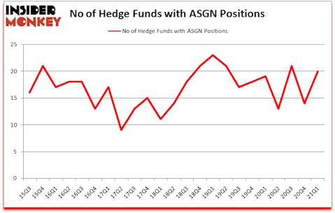 ASGN Incorporated (NYSE:ASGN) has seen an increase in hedge fund sentiment recently. ASGN Incorporated (NYSE:ASGN) was in 20 hedge funds’ portfolios at the end of March. The all time high for this statistic is 23. Our calculations also showed that ASGN isn’t among the 30 most popular stocks among hedge funds (click for Q1 rankings).
