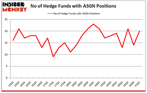 ASGN Incorporated (NYSE:ASGN) has seen an increase in hedge fund sentiment recently. ASGN Incorporated (NYSE:ASGN) was in 20 hedge funds’ portfolios at the end of March. The all time high for this statistic is 23. Our calculations also showed that ASGN isn’t among the 30 most popular stocks among hedge funds (click for Q1 rankings).