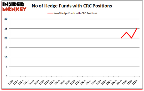 At Q3’s end, a total of 25 of the hedge funds tracked by Insider Monkey held long positions in this stock, a change of 25% from the second quarter of 2021. The graph below displays the number of hedge funds with bullish position in CRC over the last 25 quarters. So, let’s find out which hedge funds were among the top holders of the stock and which hedge funds were making big moves.