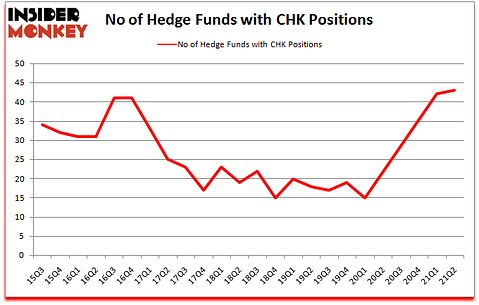 Chesapeake Energy Corporation (NASDAQ:CHK) was in 43 hedge funds’ portfolios at the end of June. The all time high for this statistic was previously 42. This means the bullish number of hedge fund positions in this stock currently sits at its all time high. CHK shareholders have witnessed an increase in hedge fund sentiment recently. There were 42 hedge funds in our database with CHK holdings at the end of March. Our calculations also showed that CHK isn’t among the 30 most popular stocks among hedge funds (click for Q2 rankings).