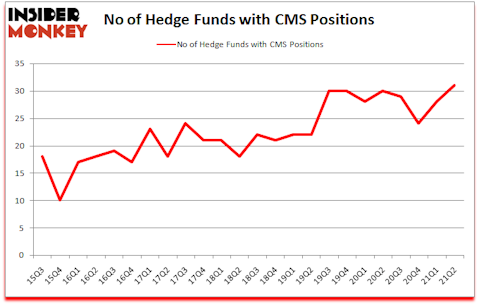 Is CMS Energy Corporation (NYSE:CMS) the right investment to pursue these days? Investors who are in the know were getting more bullish. The number of bullish hedge fund bets moved up by 3 lately. CMS Energy Corporation (NYSE:CMS) was in 31 hedge funds’ portfolios at the end of the second quarter of 2021. The all time high for this statistic is 30. This means the bullish number of hedge fund positions in this stock currently sits at its all time high. Our calculations also showed that CMS isn’t among the 30 most popular stocks among hedge funds (click for Q2 rankings).