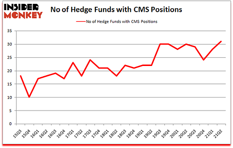 Is CMS Energy Corporation (NYSE:CMS) the right investment to pursue these days? Investors who are in the know were getting more bullish. The number of bullish hedge fund bets moved up by 3 lately. CMS Energy Corporation (NYSE:CMS) was in 31 hedge funds’ portfolios at the end of the second quarter of 2021. The all time high for this statistic is 30. This means the bullish number of hedge fund positions in this stock currently sits at its all time high. Our calculations also showed that CMS isn’t among the 30 most popular stocks among hedge funds (click for Q2 rankings).