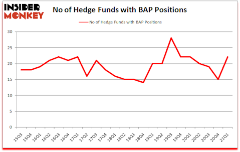 Credicorp Ltd. (NYSE:BAP) was in 22 hedge funds’ portfolios at the end of the first quarter of 2021. The all time high for this statistic is 28. BAP shareholders have witnessed an increase in hedge fund interest lately. There were 15 hedge funds in our database with BAP positions at the end of the fourth quarter. Our calculations also showed that BAP isn’t among the 30 most popular stocks among hedge funds (click for Q1 rankings).