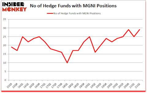 Heading into the third quarter of 2021, a total of 29 of the hedge funds tracked by Insider Monkey were bullish on this stock, a change of 16% from the previous quarter. Below, you can check out the change in hedge fund sentiment towards MGNI over the last 24 quarters. With hedge funds’ positions undergoing their usual ebb and flow, there exists an “upper tier” of key hedge fund managers who were upping their stakes meaningfully (or already accumulated large positions).
