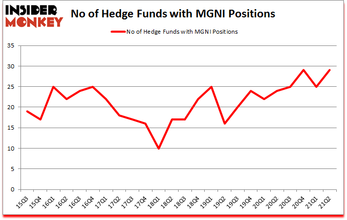 Heading into the third quarter of 2021, a total of 29 of the hedge funds tracked by Insider Monkey were bullish on this stock, a change of 16% from the previous quarter. Below, you can check out the change in hedge fund sentiment towards MGNI over the last 24 quarters. With hedge funds’ positions undergoing their usual ebb and flow, there exists an “upper tier” of key hedge fund managers who were upping their stakes meaningfully (or already accumulated large positions).