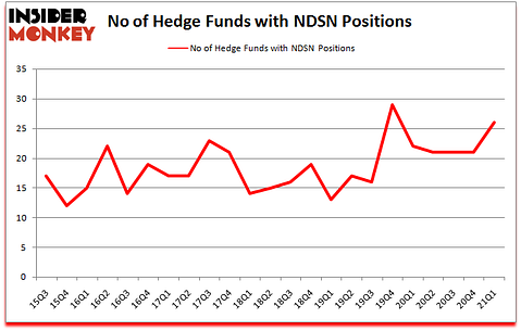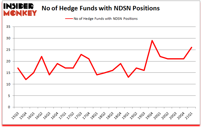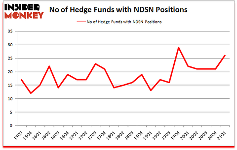 At first quarter’s end, a total of 26 of the hedge funds tracked by Insider Monkey were long this stock, a change of 24% from the previous quarter. By comparison, 22 hedge funds held shares or bullish call options in NDSN a year ago. With hedge funds’ sentiment swirling, there exists a few key hedge fund managers who were boosting their holdings considerably (or already accumulated large positions).