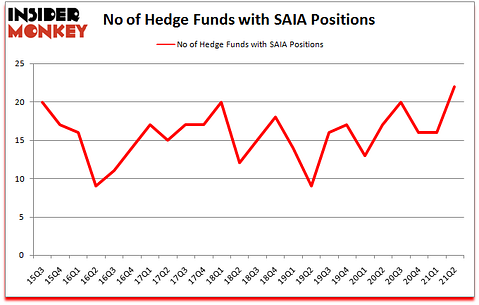 Saia Inc (NASDAQ:SAIA) shareholders have witnessed an increase in hedge fund sentiment recently. Saia Inc (NASDAQ:SAIA) was in 22 hedge funds’ portfolios at the end of the second quarter of 2021. The all time high for this statistic was previously 20. This means the bullish number of hedge fund positions in this stock currently sits at its all time high. Our calculations also showed that SAIA isn’t among the 30 most popular stocks among hedge funds (click for Q2 rankings).