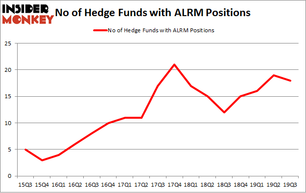 Heading into the fourth quarter of 2019, a total of 18 of the hedge funds tracked by Insider Monkey were long this stock, a change of -5% from one quarter earlier. The graph below displays the number of hedge funds with bullish position in ALRM over the last 17 quarters. So, let’s find out which hedge funds were among the top holders of the stock and which hedge funds were making big moves.