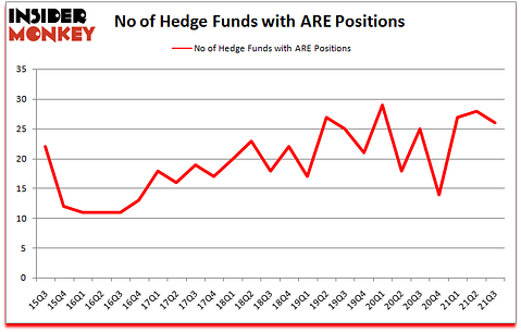 Alexandria Real Estate Equities Inc (NYSE:ARE) shareholders have witnessed a decrease in hedge fund sentiment of late. Alexandria Real Estate Equities Inc (NYSE:ARE) was in 26 hedge funds’ portfolios at the end of September. The all time high for this statistic is 29. There were 28 hedge funds in our database with ARE holdings at the end of June. Our calculations also showed that ARE isn’t among the 30 most popular stocks among hedge funds (click for Q3 rankings).