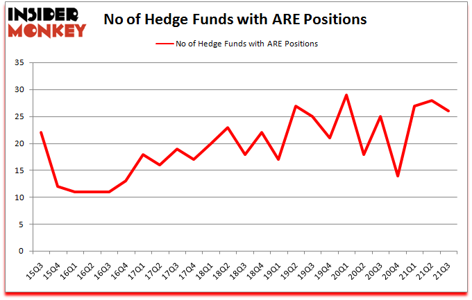 At third quarter’s end, a total of 26 of the hedge funds tracked by Insider Monkey held long positions in this stock, a change of -7% from one quarter earlier. By comparison, 25 hedge funds held shares or bullish call options in ARE a year ago. So, let’s examine which hedge funds were among the top holders of the stock and which hedge funds were making big moves.