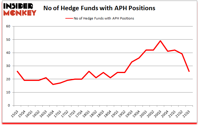 Amphenol Corporation (NYSE:APH) was in 26 hedge funds’ portfolios at the end of the third quarter of 2021. The all time high for this statistic is 49. APH shareholders have witnessed a decrease in hedge fund interest of late. There were 39 hedge funds in our database with APH positions at the end of the second quarter. Our calculations also showed that APH isn’t among the 30 most popular stocks among hedge funds (click for Q3 rankings).